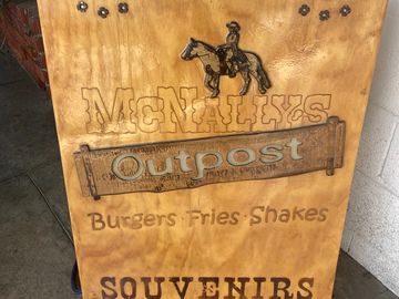 Only for our existing clients ! We do special custom branding project like menus..Above is a branded butcher block counter top and 3 ft. round tables..